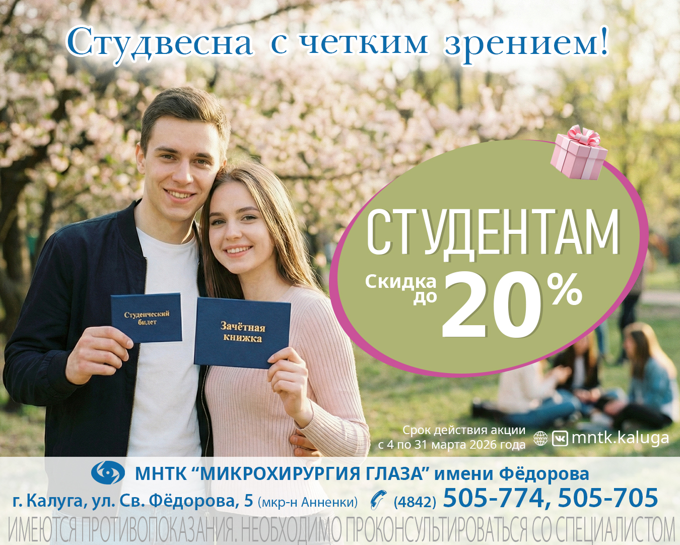 Только в МАРТЕ! для студентов фемтолазерная коррекция зрения с выгодой до 20% в федеральной клинике МНТК имени Фёдорова!