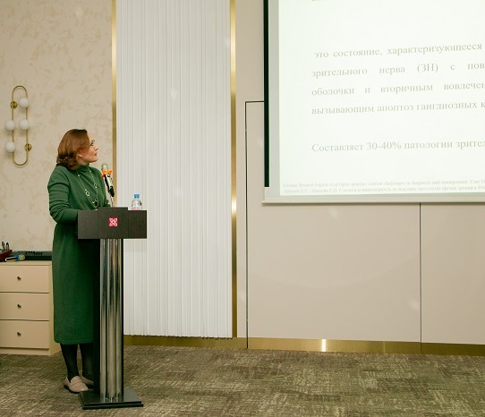 Мельникова Наталья Владимировна, к.м.н., доцент кафедры офтальмологии ФГБОУ ДПО РМАНПО Минздрава России, врач-офтальмолог МГОЦ ММНКЦ им. С.П. Боткина (г. Москва) представила доклад, посвящённый невриту зрительного нерва — состоянию, которое часто недооценивается на ранних этапах, но при этом составляет значительную долю в структуре патологии зрительных путей. Важно проводить дифференциальную диагностику с другими причинами острой потери зрения. Необходима своевременная диагностика с использованием МРТ, оптической когерентной томографии, визометрии и периметрии. НЗН часто ассоциирован с другими заболеваниями (в частности, рассеянным склерозом), поэтому пациенты нуждаются в междисциплинарном ведении.