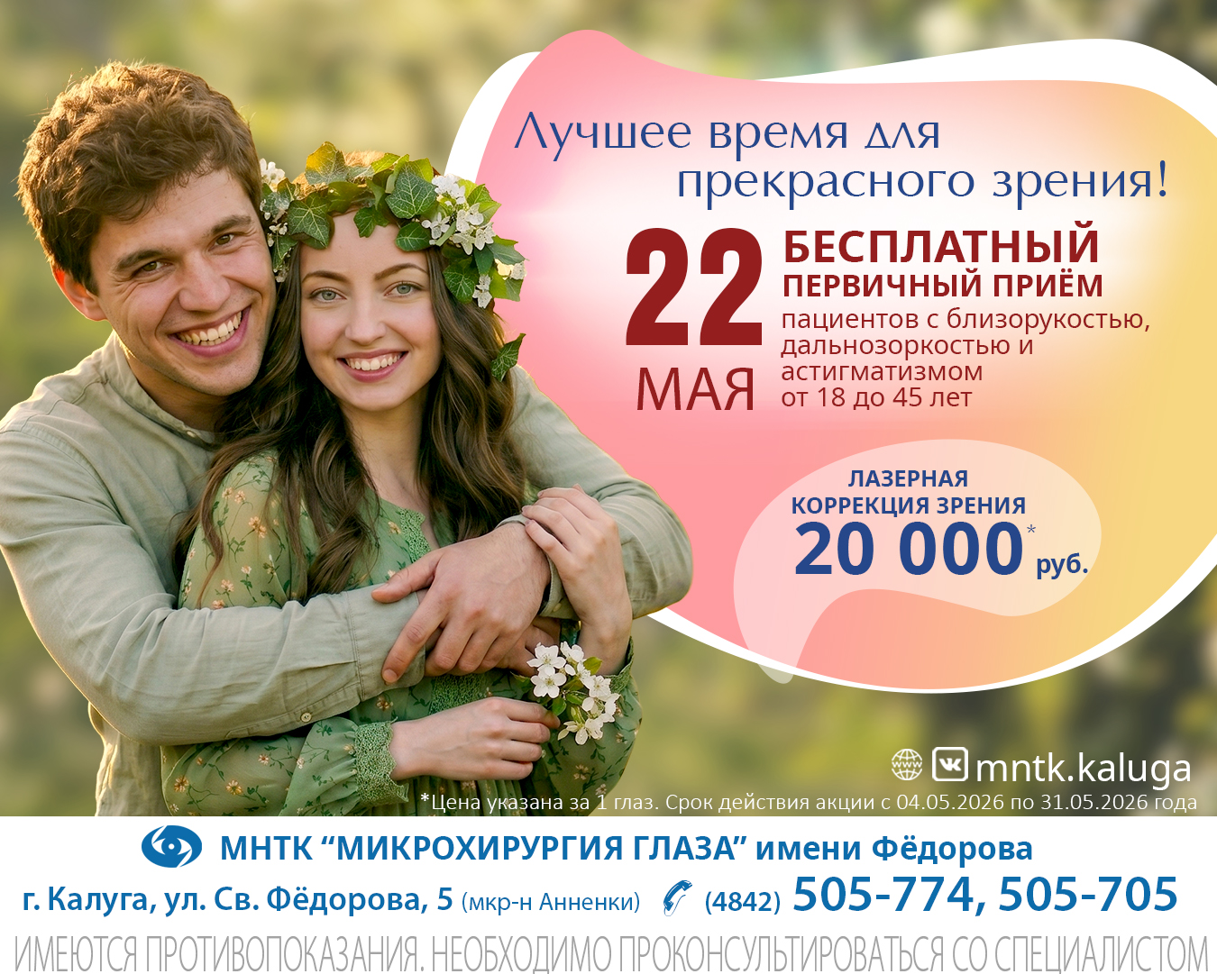 Специальная цена от 20 000 рублей на лазерную коррекцию зрения ДО КОНЦА МАЯ!