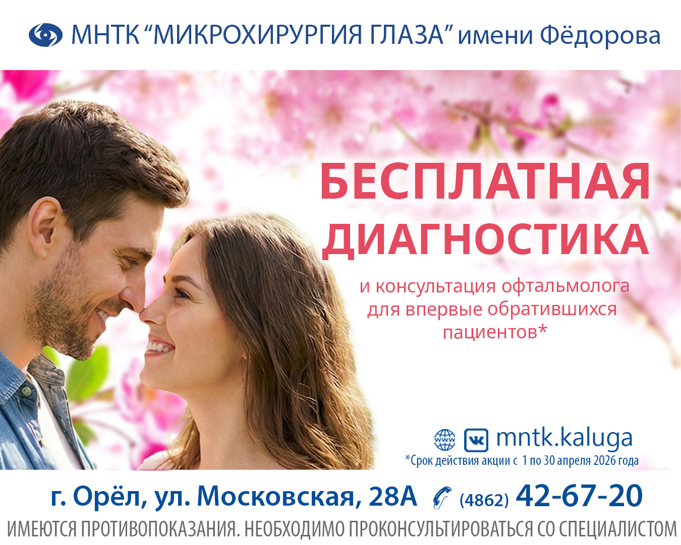 | Доктор | Приём ведёт Макаренкова Елена александровна, ведущий врач-офтальмолог отделения хирургии глаукомы Калужского филиала МНТК. Приглашаются пациенты с глаукомой и повышенным внутриглазным давлением. |